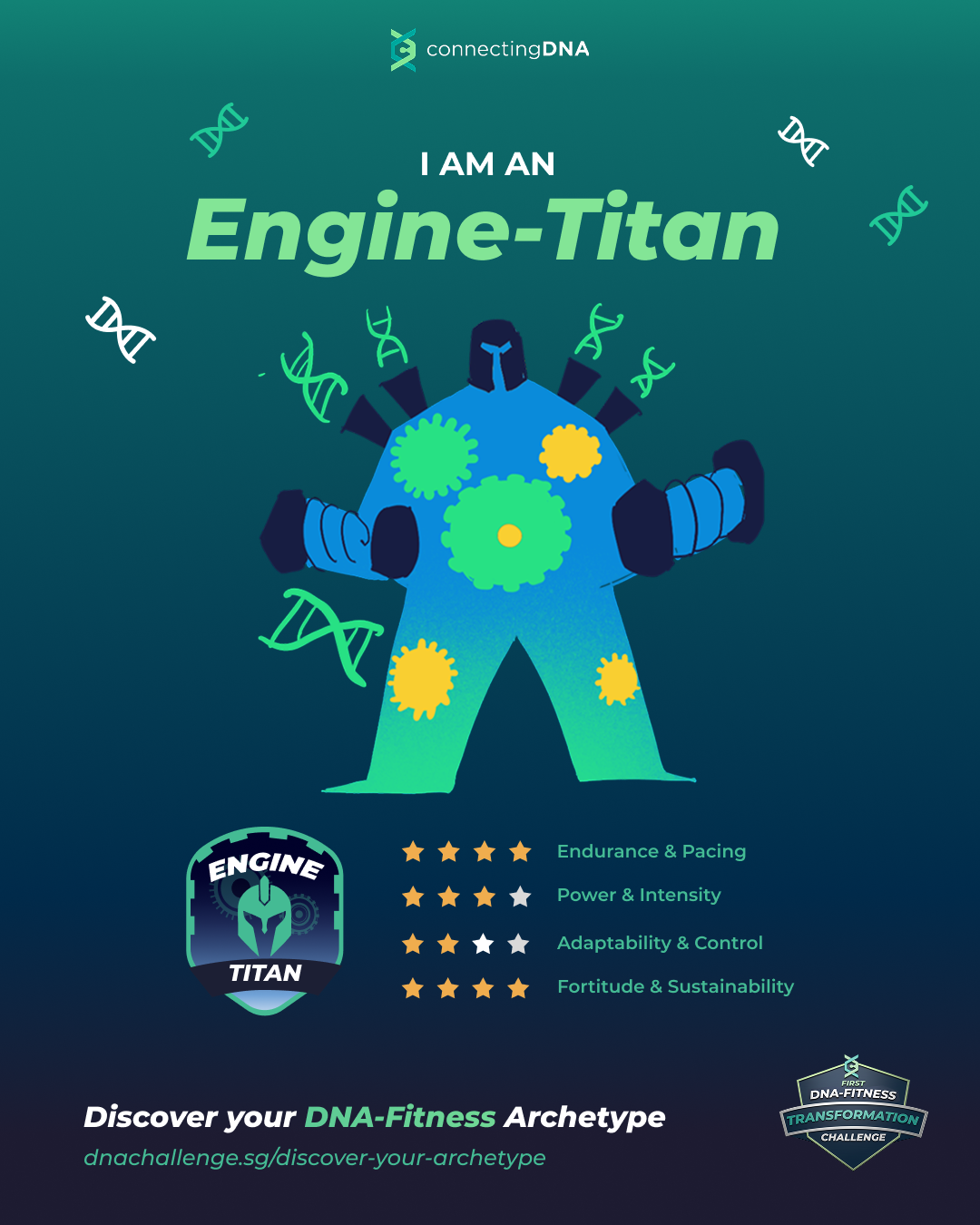 The information provided on this page is for educational and informational purposes only. The DNA Archetype Quiz is a self-reflection tool designed to help you better understand your training preferences and tendencies. It is not intended to provide medical, health, genetic, or professional advice.