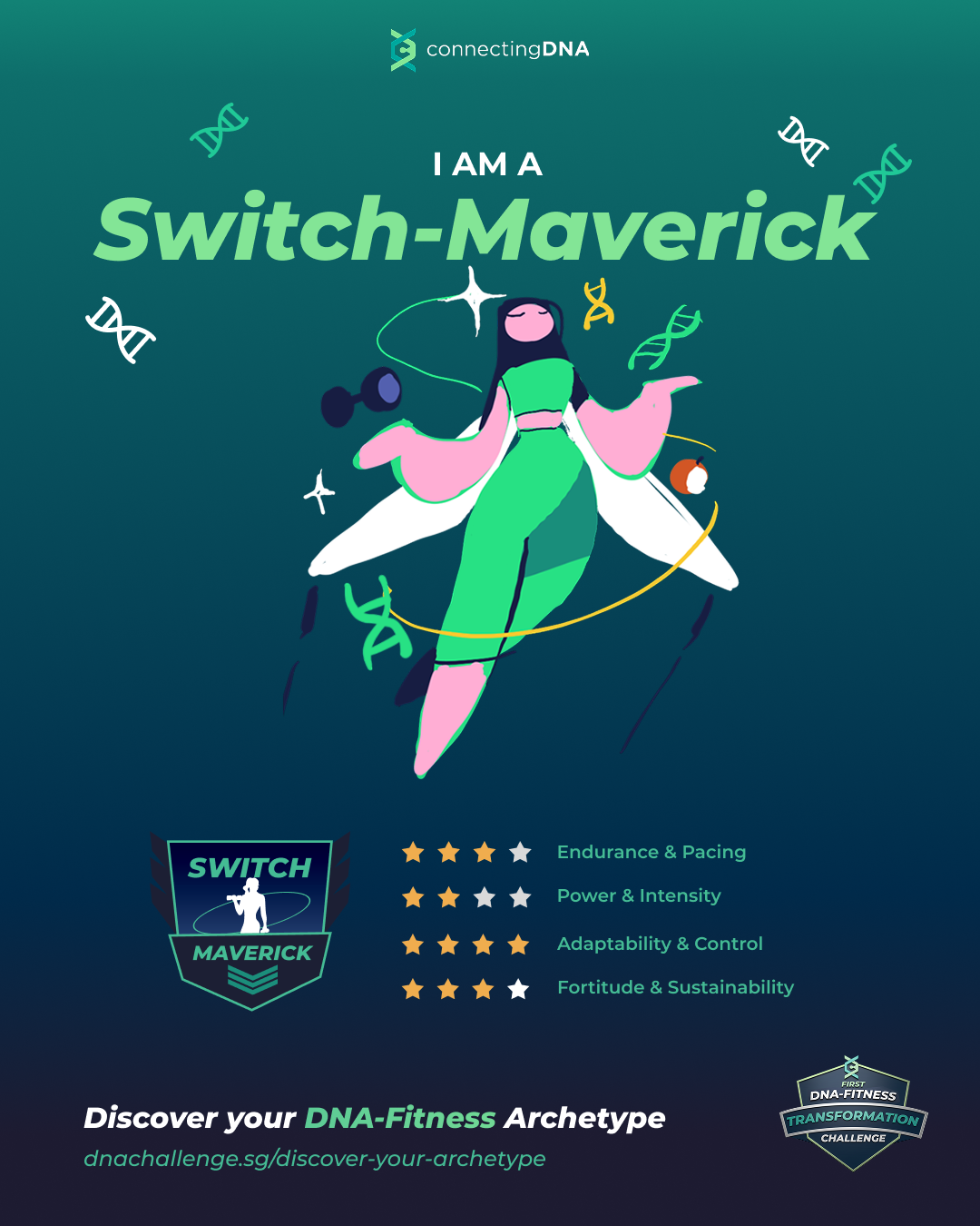 The information provided on this page is for educational and informational purposes only. The DNA Archetype Quiz is a self-reflection tool designed to help you better understand your training preferences and tendencies. It is not intended to provide medical, health, genetic, or professional advice.